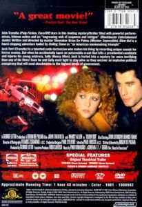 Jack Terry (John Travolta) is a sound technician who works in horror B movies, providing screams and others sound effects. One night, while he is recording sounds in a park, he witnesses an accident in which a car falls in a nearby lake after a blowout. Jack dives and inside the submerged car he founds the governor of Pennsylvania, dead, and a young prostitute named Sally (Nancy Allen), half drowned. The car accident seems only an unlucky casualty (complicated by the potential scandal). However, analyzing the audiotape he was recording at the park, Jack discovers that a gunshot preceded the blowout and understands that the incident has been a murder. Jack (cooperating with Sally) starts a dangerous quest for truth, while the psychotic hit man Burke (John Lithgow) is occupied to cover the conspiracy behind the assassination.